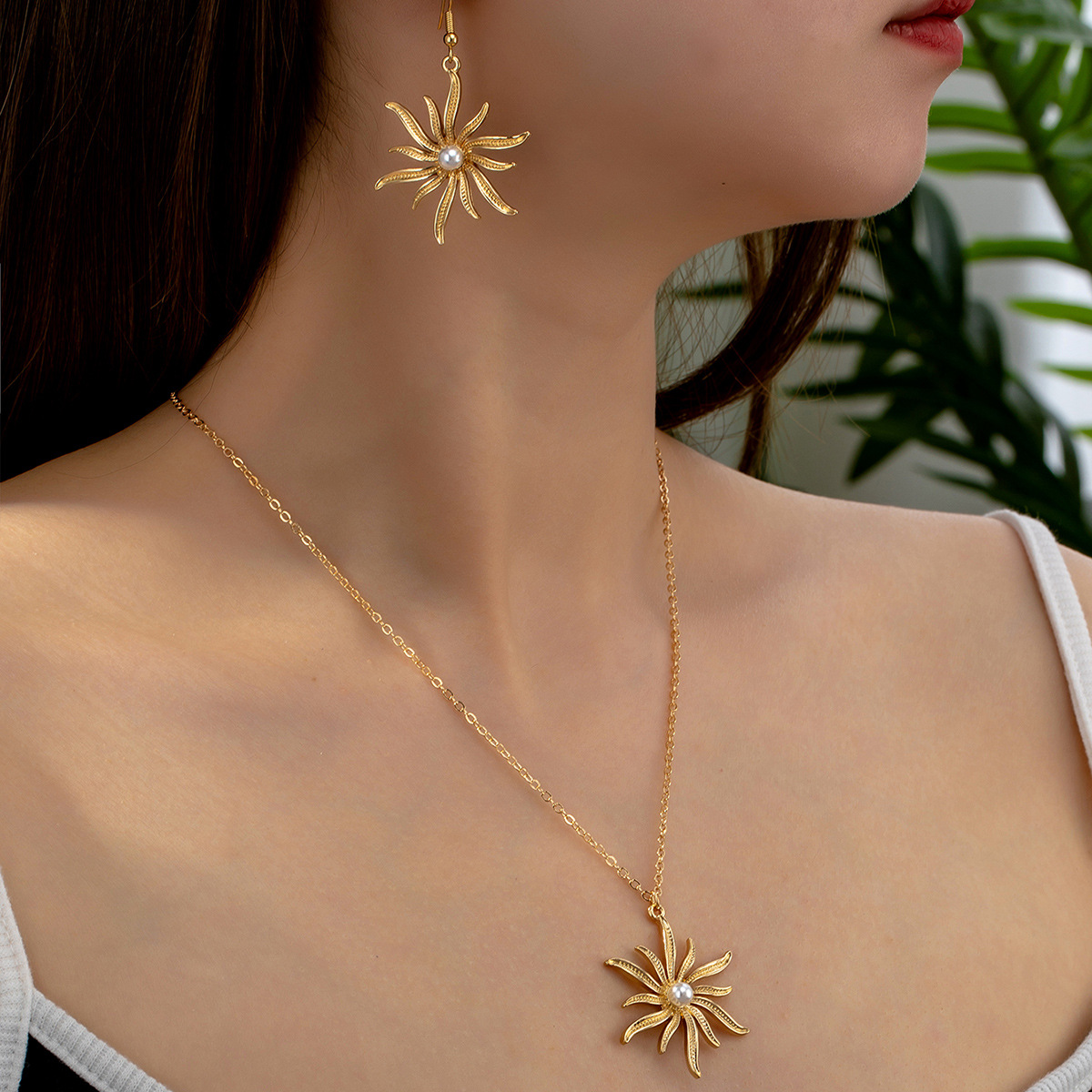 欧米の越境する太陽の花のネックレスの太陽の花のイヤリングの気質の優雅なファッションの百合のアクセサリーのスーツのメーカーは直接販売します。