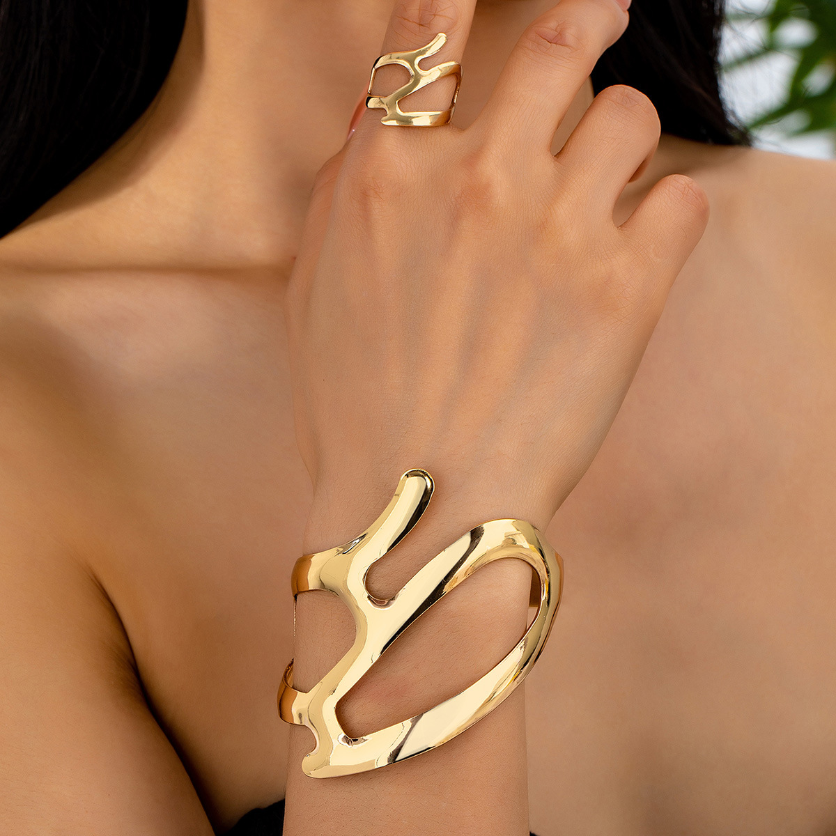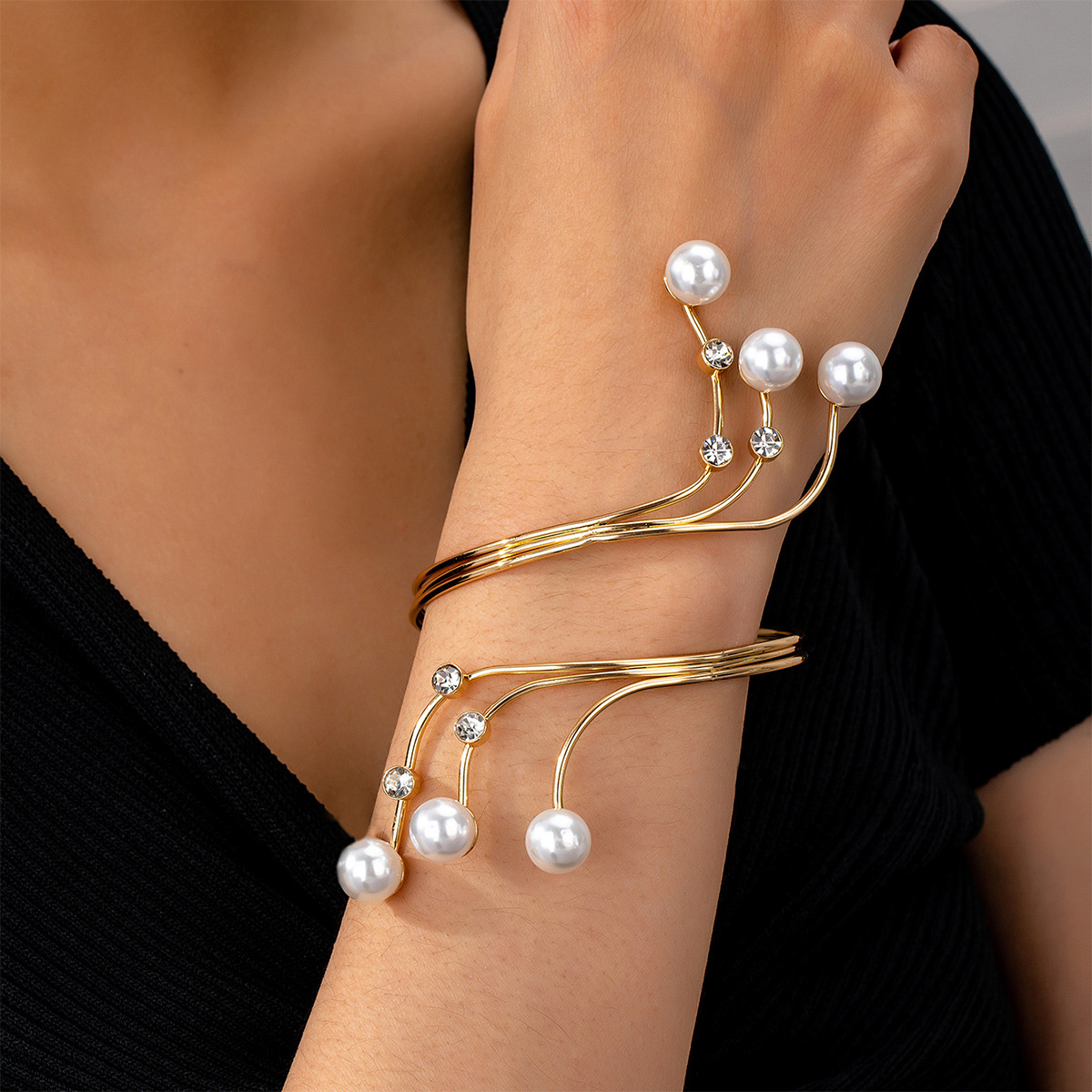 ヨーロッパとアメリカのクロスボーダーのクールな個性不規則なラインオープンブレスレットレトロイミテーションパールブレスレットインスタイル