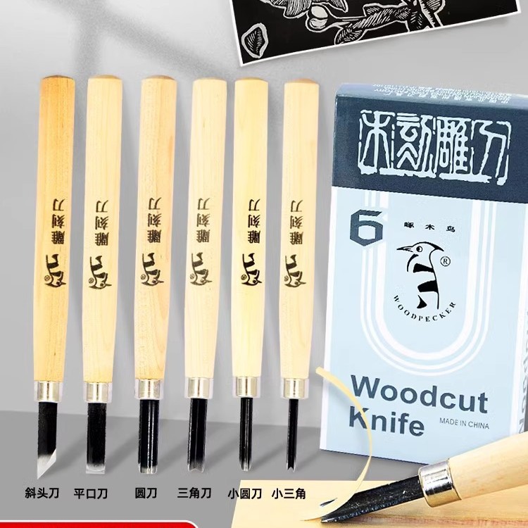 キツツキ木彫りナイフ版画シングル彫刻ナイフ木製三角丸ナイフゴム印木彫りナイフ根彫り赤セット
