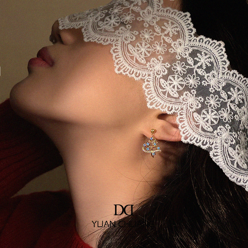 オリジナル厚金メッキ18K本金S925シルバー針アルカリ水結び目イヤリングライトラグジュアリージルコンハート型ニッチイヤリング女性用