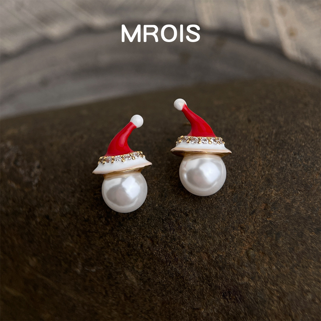赤ずきんちゃん〜オリジナルオイルドロップパール雪だるまイヤリング、クリエイティブなニッチデザイン、軽くて豪華なジルコンハイエンドイヤリング