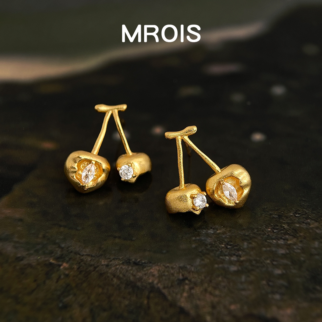 オリジナル!ブロークンチェリー〜サンドブラストテクスチャー厚い本金メッキ925シルバー針ファッションハイエンドイヤリング女性用