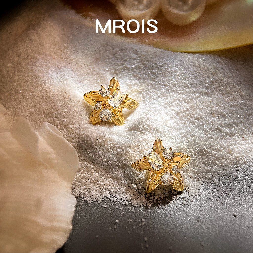 デザイナー厚メッキ18k真金海星ジルコンピアス925銀針軽贅沢高級感海洋オリジナルイヤリング女