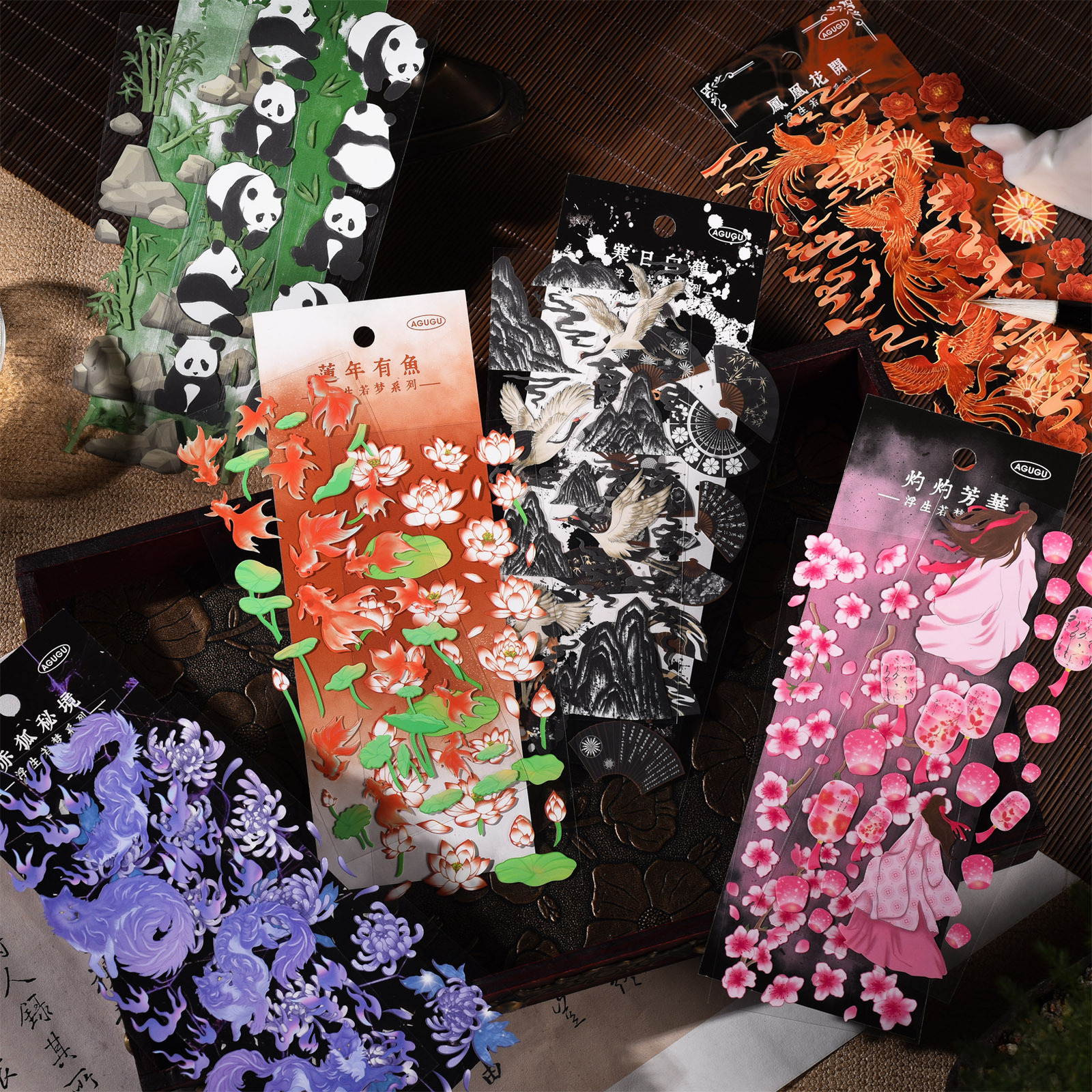 AGUGU フローティングメングカードステッカー国民的ファッション古代風パンダ金魚ハンドブック装飾素材流麻ステッカー