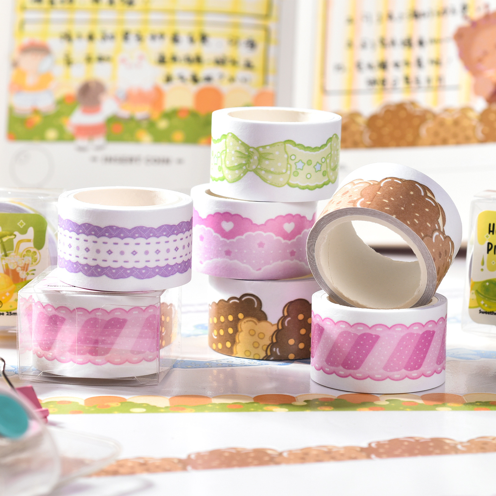 AGUGUあなた良い时间ダイカットテープと纸ステッカーかわいい少女基础スプラッシュ砂テープdecoステッカー巻き