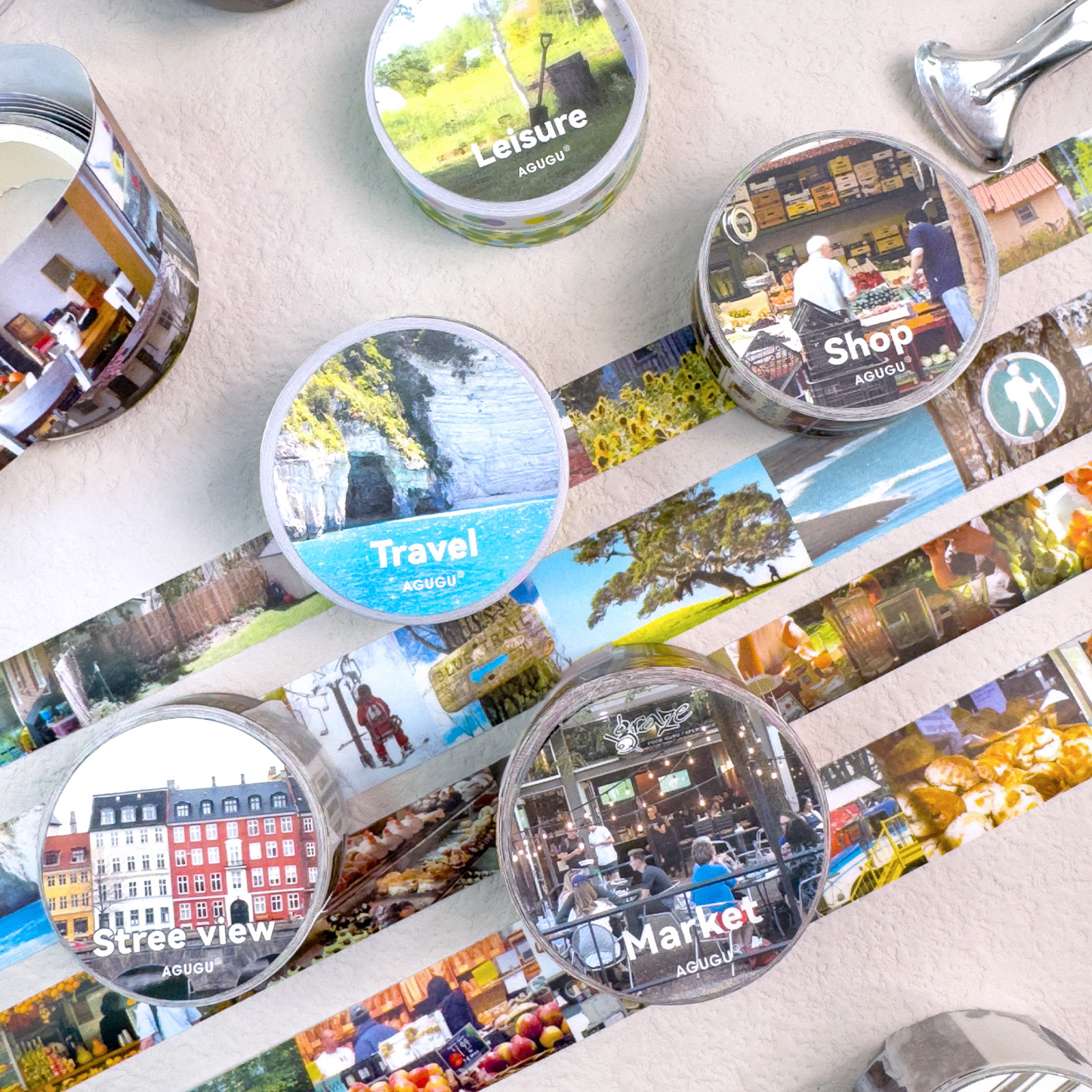 AGUGUゆったりタイム風景テープレトロ手帳飾り引きテープ塩系手帳インスタ和紙テープ