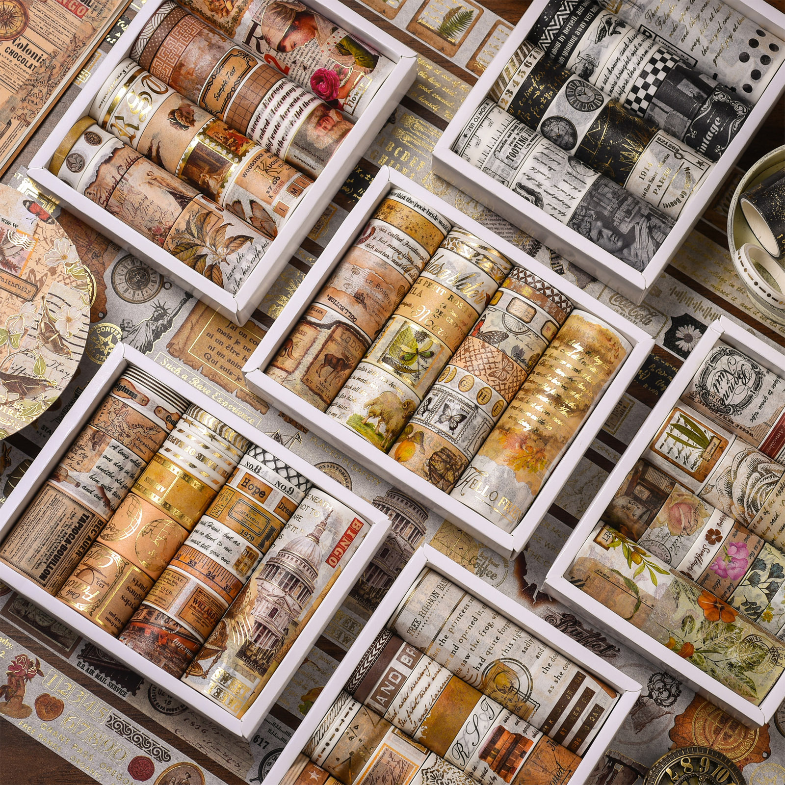 AGUGUストーリーコレクション金箔和紙テープDIYデコレーション素材ステッカーinsレトロ手帳テープセット