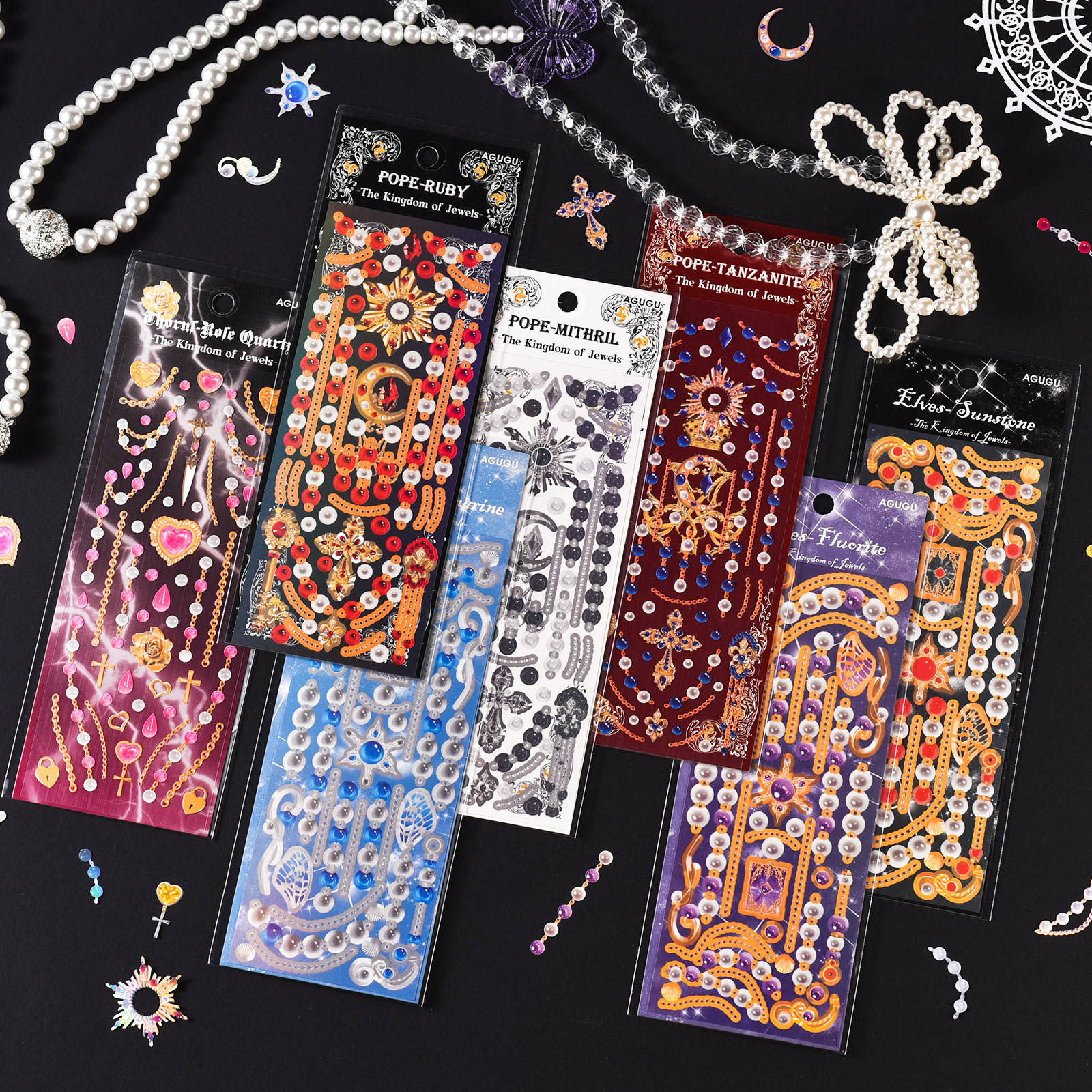 AGUGU宝石の国グーステッカーオリジナル韓国流麻レトロ真珠レーザー手帳グーステッカー