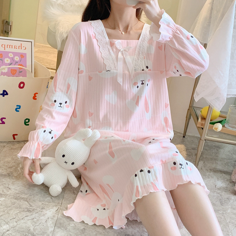 胸パッド付きクロスボーダー貿易用パジャマ、綿風ワンピースパジャマ、2025年新作レディース春秋長袖長ズボンパジャマ