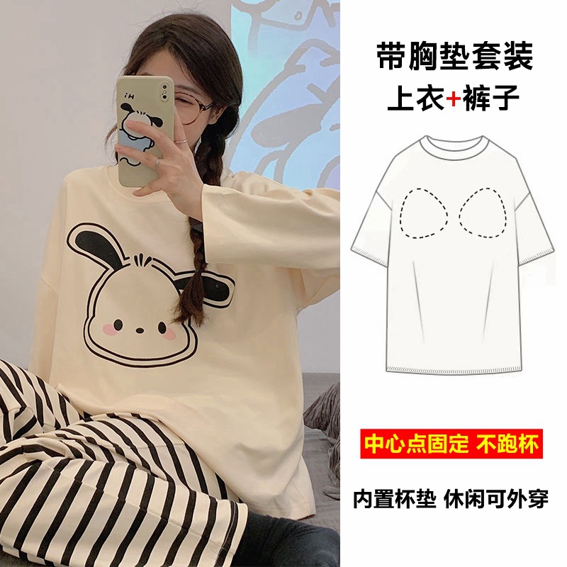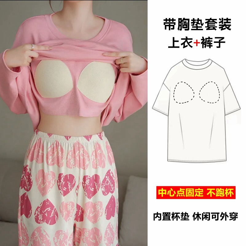 胸パッド付きパジャマ女性2024新長袖春秋夏かわいいアニメ大サイズの家庭服はスーツを着ることができる