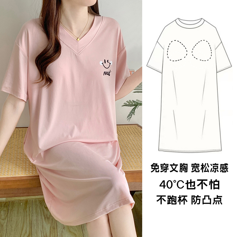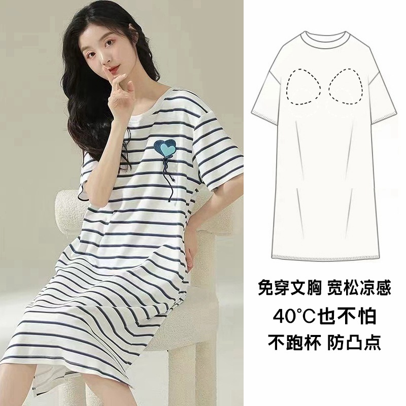 胸パッド付きのパジャマスカート女性は2024年に新型の夏の半袖のゆったりとしたパジャマスカートを着て、夏にワンピースを着ることができる