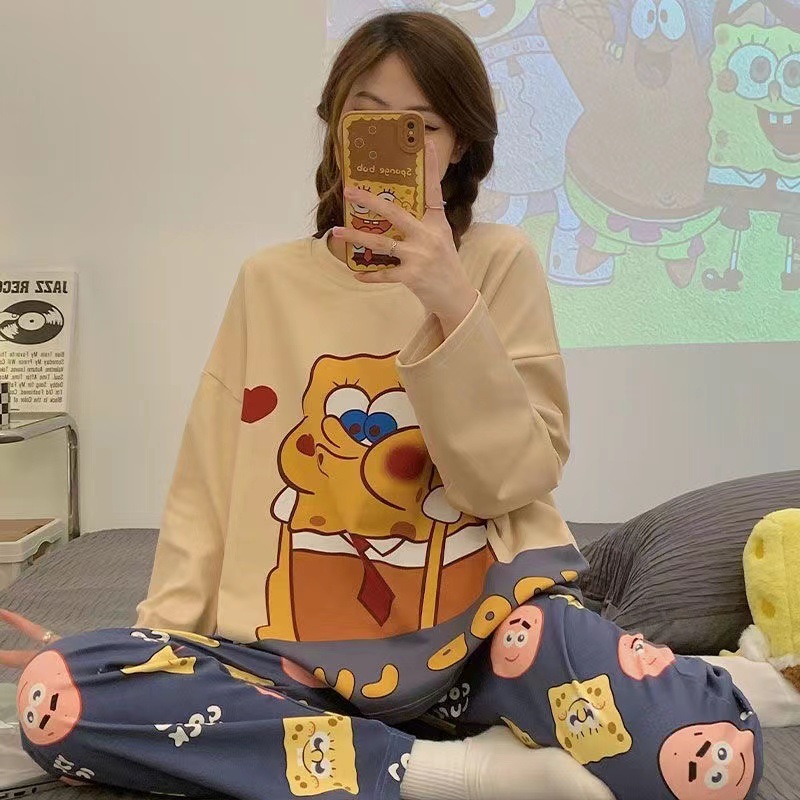 クロスボーダーの外国貿易の女性のパジャマの女性の春秋の金の長袖の漫画の甘い学生の漫画のゆったりした冬の胸のパッドのカバー