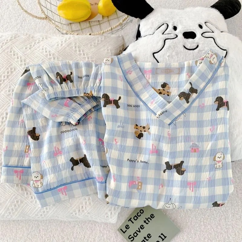 パジャマ女性秋2023年長袖かわいい学生は夏の薄い春と秋の2セットの家庭を着ることができる