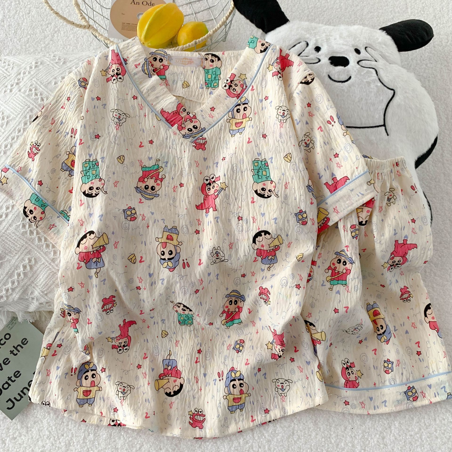 かわいい女の子パジャマクラウドコットン夏 V ネック半袖スーツ 2025 新しいプリンセスガール漫画女の子夏