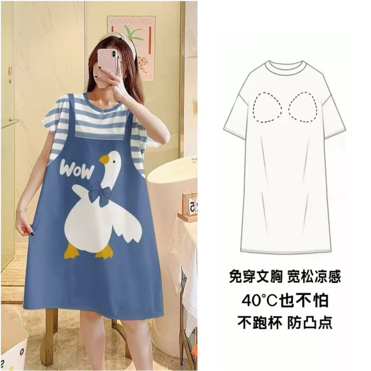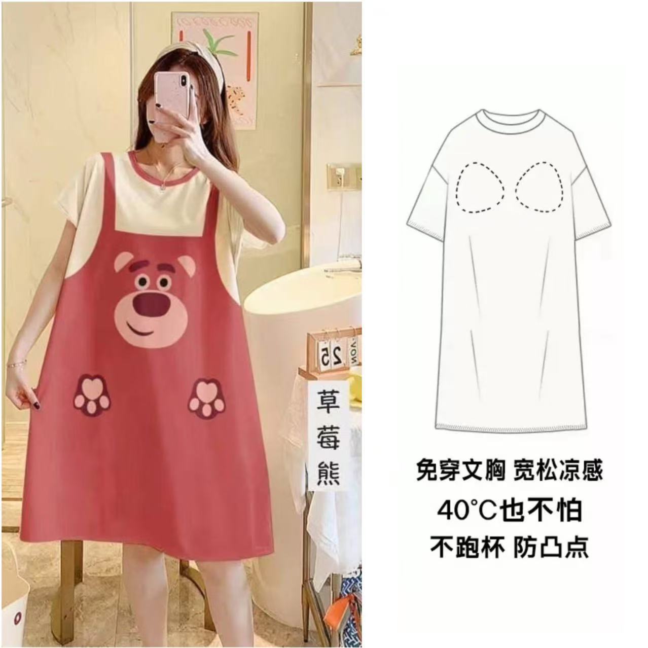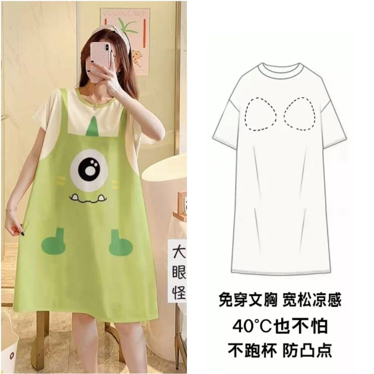 胸パッド付き夏の半袖ナイトガウン、甘い漫画、かわいい、ゆったりとした大きいサイズのホーム服、中東と東南アジアの外国貿易卸売