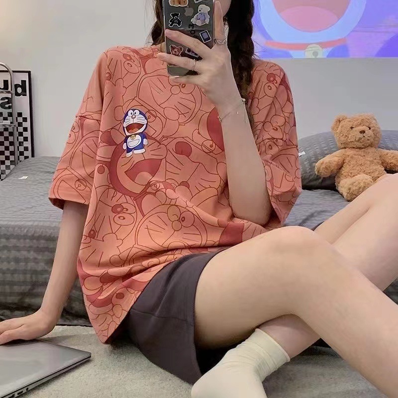 パジャマの女性の夏の半袖のカバーの甘い胸のパッドの韓国版の漫画の学生のレジャーの部屋の服のゆったりしている大きいサイズの夏
