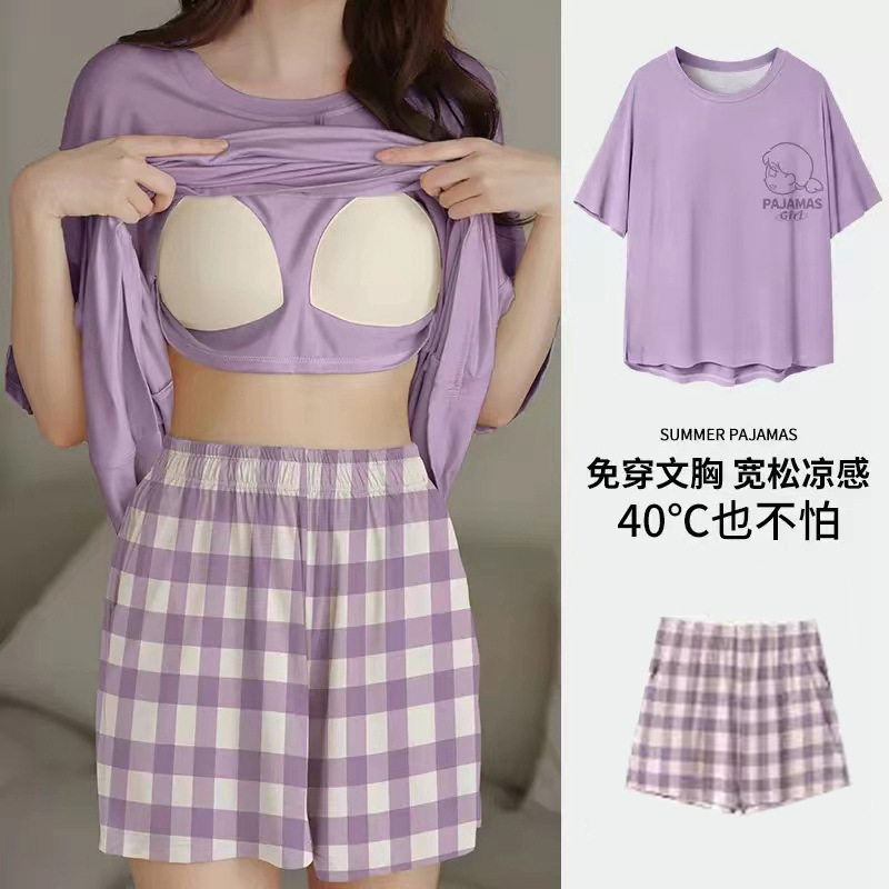 胸パッド付きパジャマ女性は夏に家庭服を着ることができる2セット2024新夏カジュアル大サイズアニメ