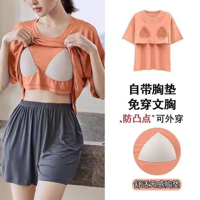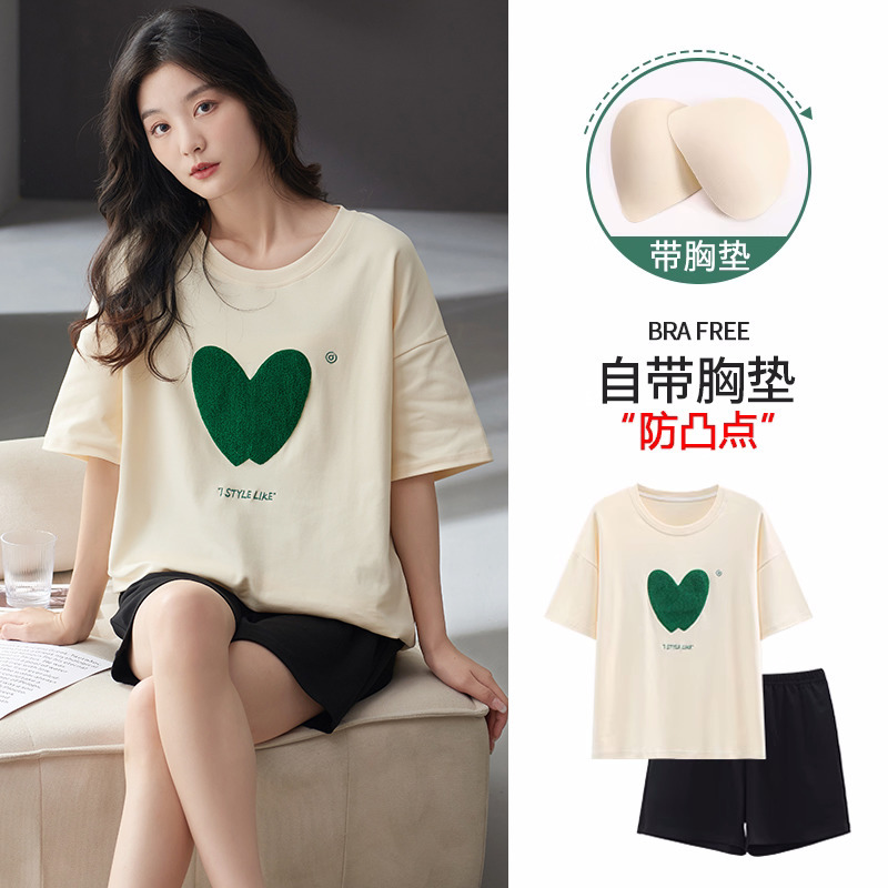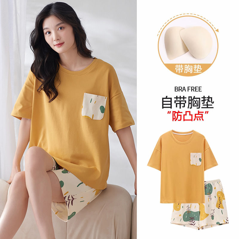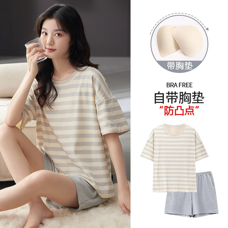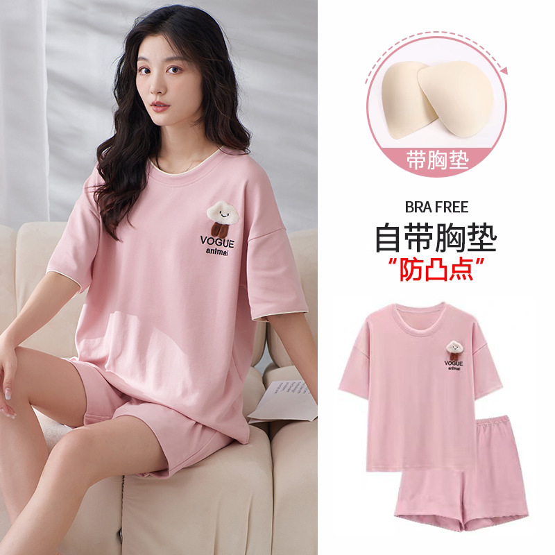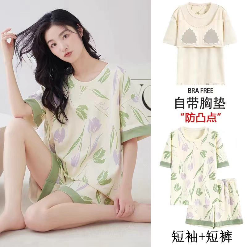パジャマの女性は胸のパッドを持っています。下着の半袖のズボンを着ないでください。学生はゆったりしています。
