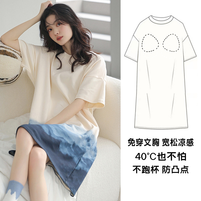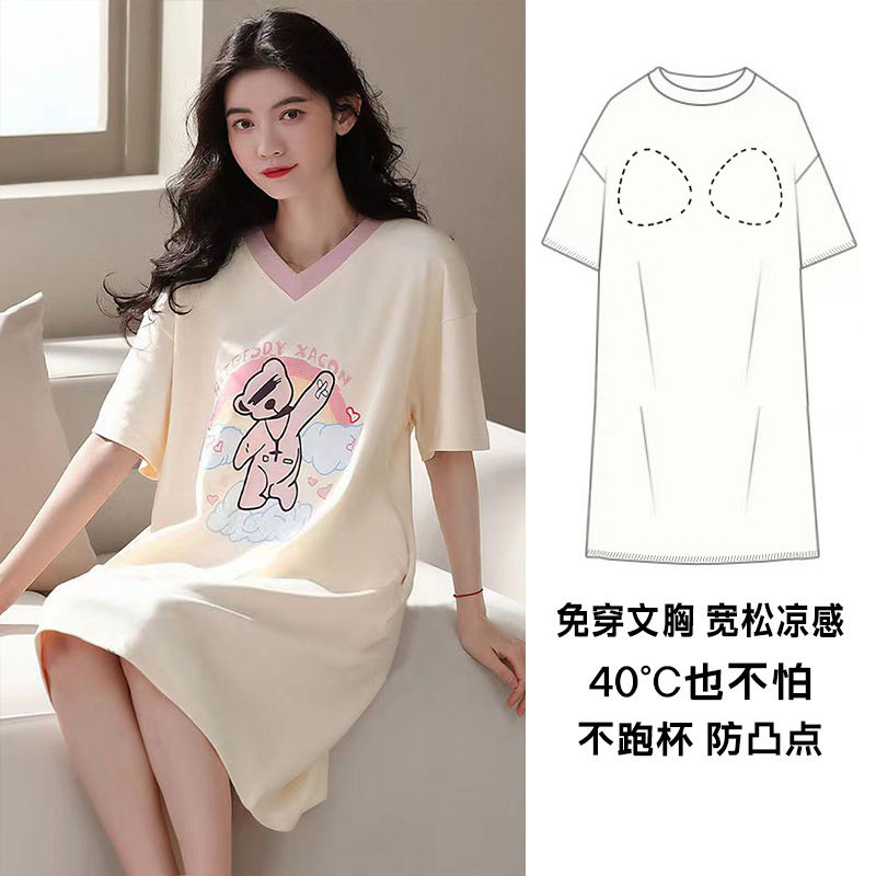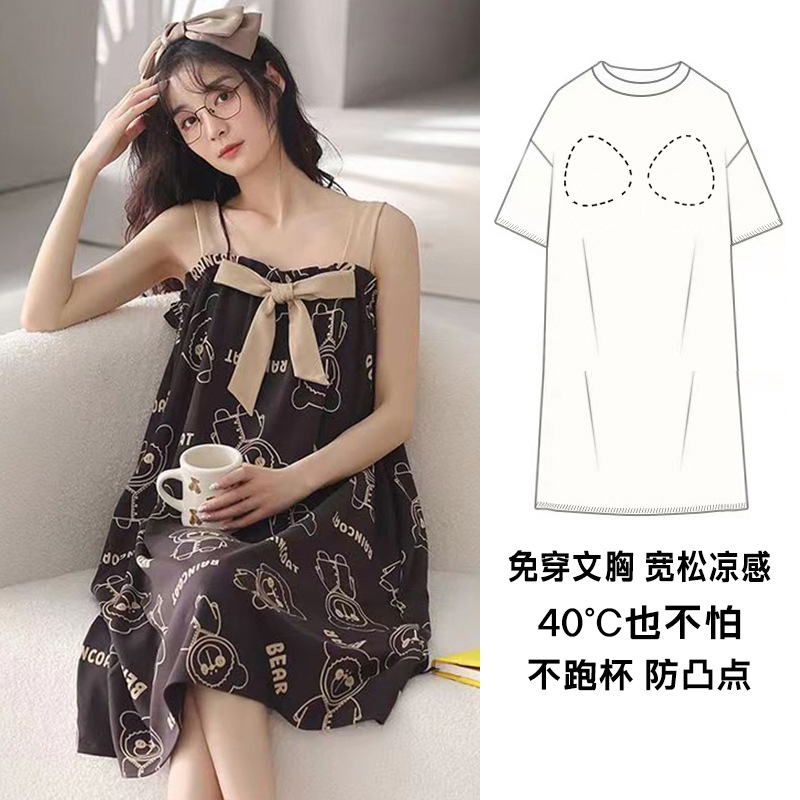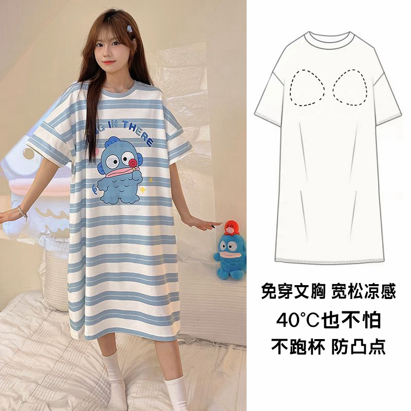 胸パッド付きのパジャマスカート女性2024年の新型夏の半袖のゆったりしたアニメの防凸点夏のワンピースは外着できます。