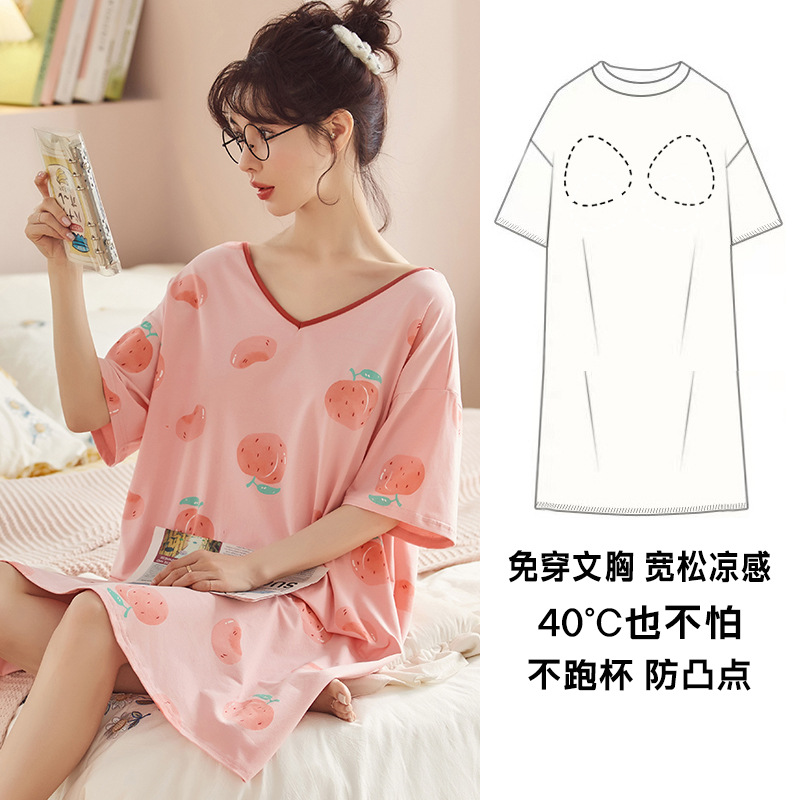 胸パッド付きのパジャマスカート女性アニメ韓国版夏の半袖ゆったりしたワンピース