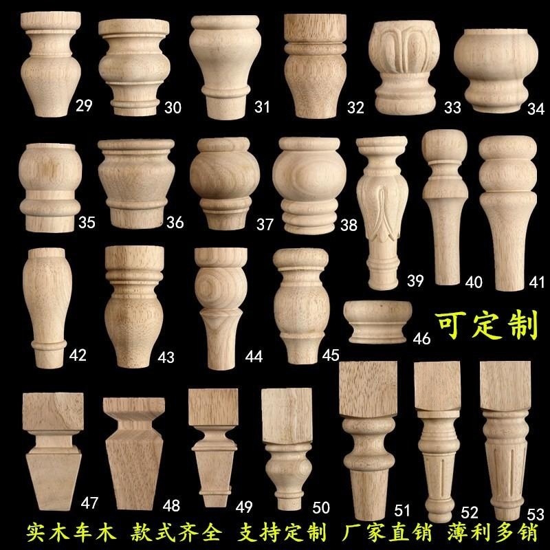 無垢材家具のテーブル脚、ベッドキャビネットの脚、コーヒーテーブルの脚、車の木製アメリカンラバーウッド彫刻の四角い脚、ひょうたんの脚、ローマ柱頭