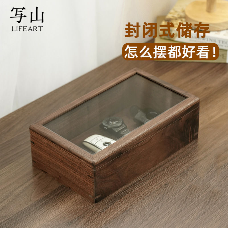 北米産ブラックウォールナット香水ジュエリー手作り収納無垢材ディスプレイボックスプリントバッジ防塵ディスプレイ