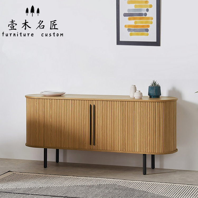 北欧無垢材サイドボードレトロテレビキャビネット楕円形収納キャビネットアメリカンシンプルなログカラーコンソールテーブル