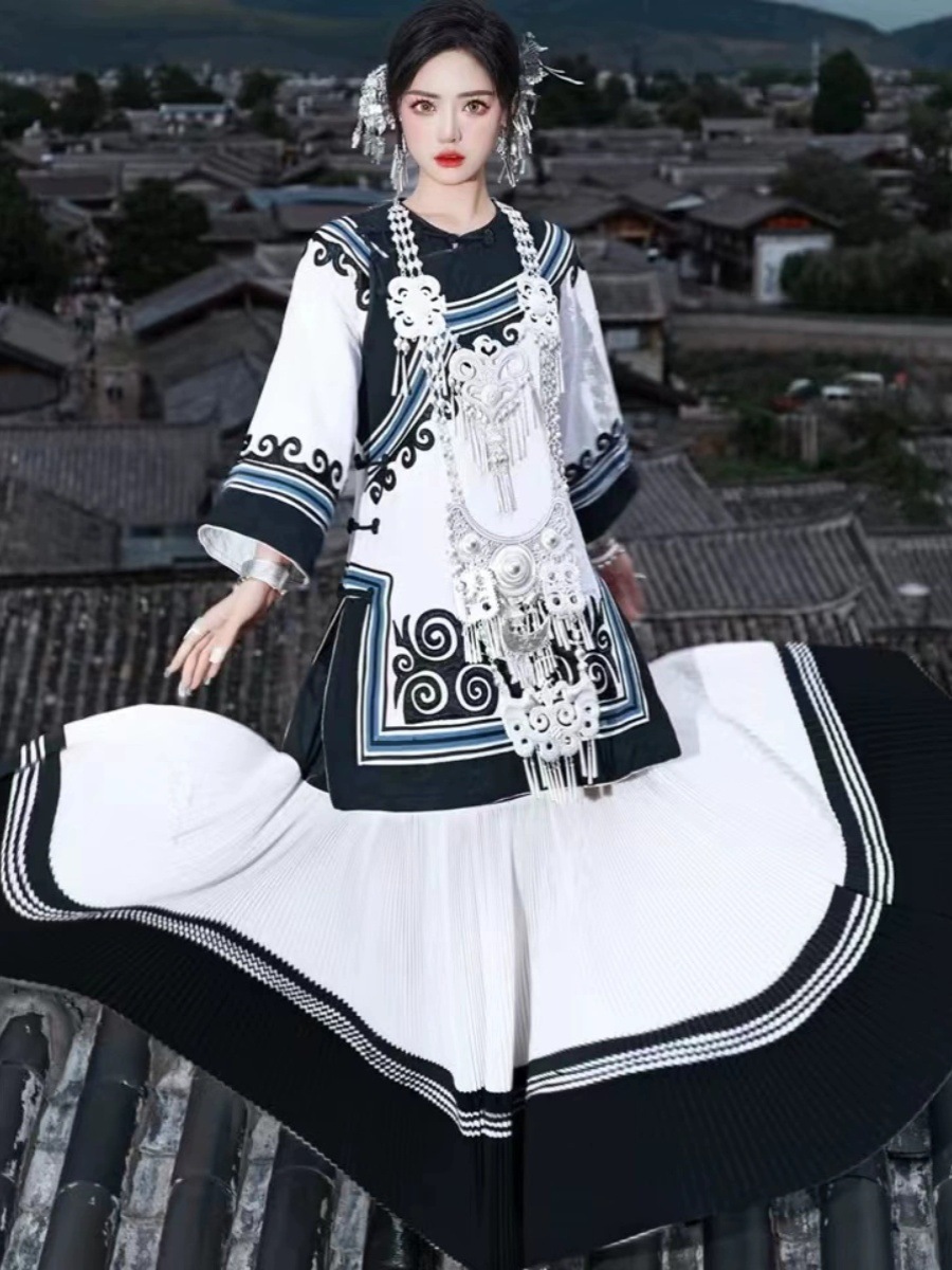 エスニックスタイル 2024 新しい彝族服旅行写真秋プリントライト高級スタイル女性のためのスーツ