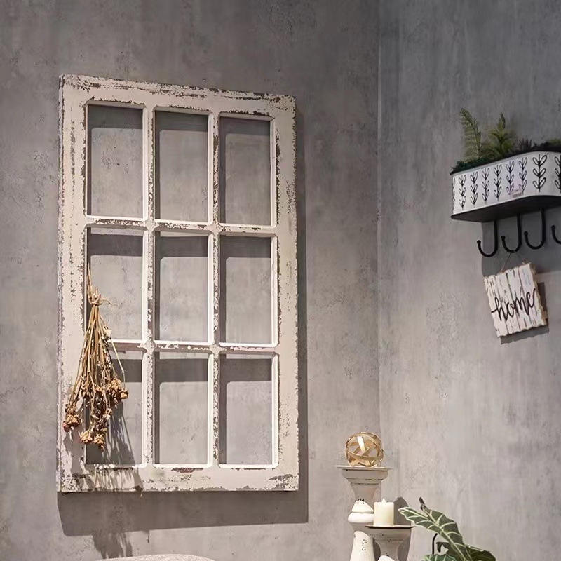 レトロな無垢材の壁掛け偽窓壁掛け装飾無垢材クリエイティブヨーロッパガーデンバーホーム木製装飾絵画
