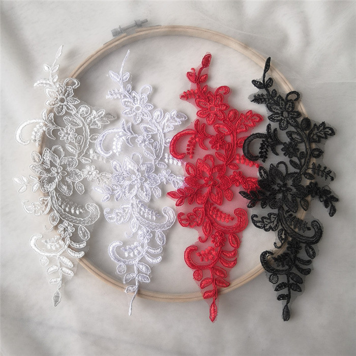 黒赤車の股花車骨レースアップリケウェディングドレスアクセサリーレース diy 手作りアクセサリーアップリケ