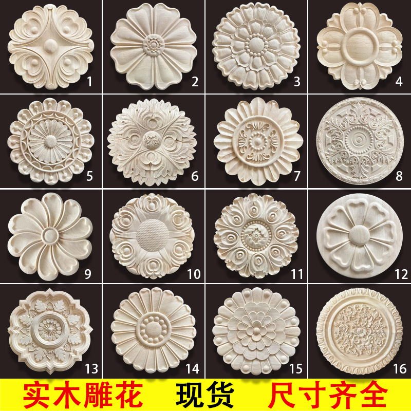 東陽木彫り無垢材ソリッドラウンドデカールスタイルディスク壁キャビネットドア背景壁クラフト装飾品装飾