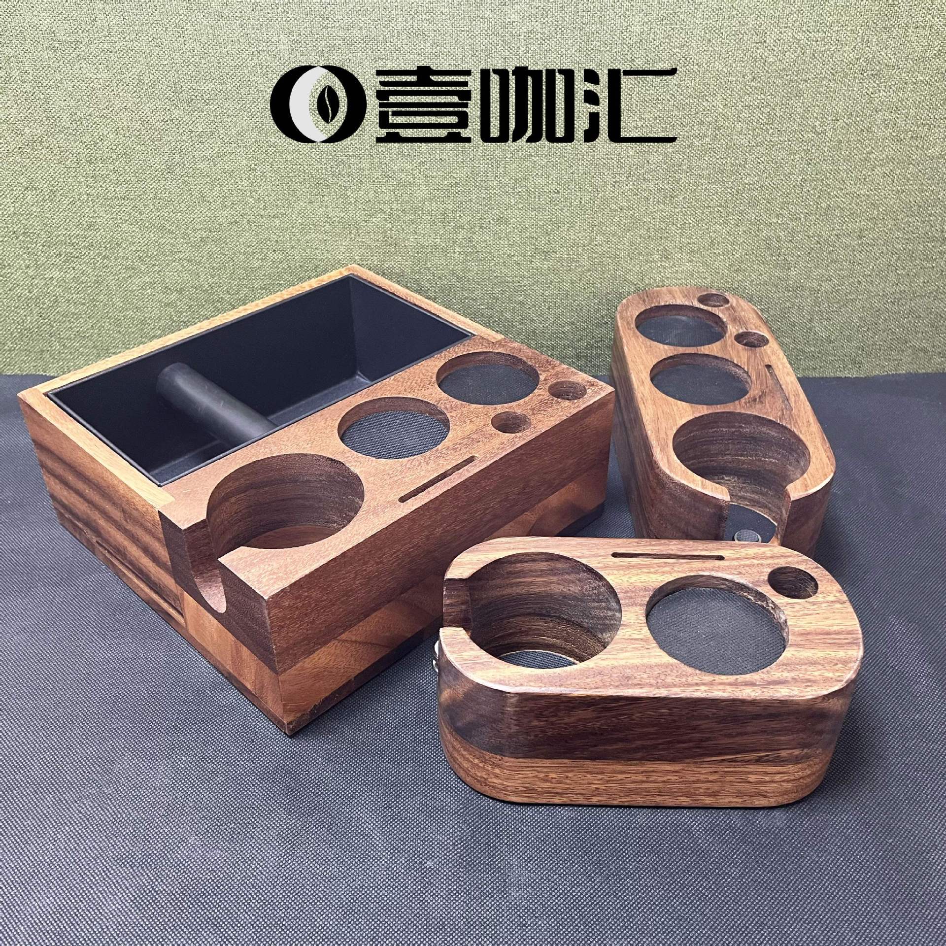 胡桃木実木滓コーヒー箱多機能一体式家庭用コーヒースラグボックス取っ手スタンド圧粉座