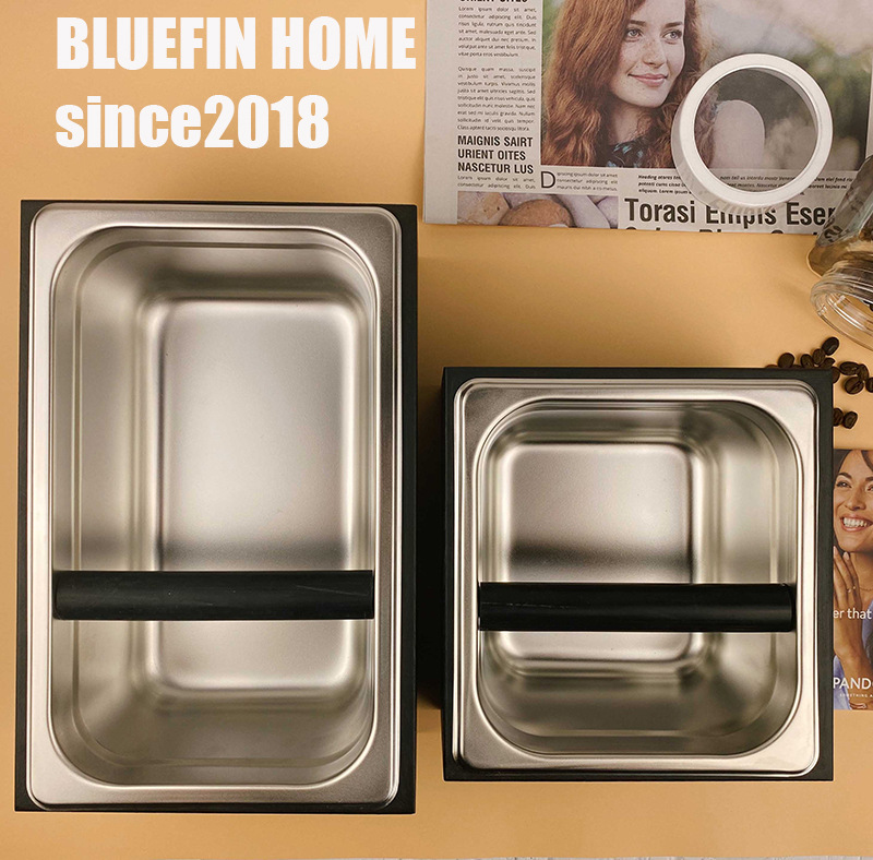 ステンレスの木製のコーヒーの粉かすの桶の粉かすの箱をたたいてかすの箱をたたいてかすの溝をたたいてかすの箱の木のコーヒーのセットの器具をたたきます。