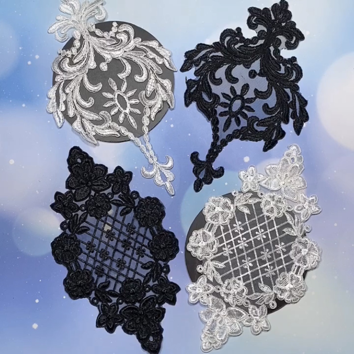 ファッションネットの糸の車の骨の線のダイヤモンドの復古の花のレースの服装の補助材料は花の肩の袖のズボンの足に対して花を飾ります。