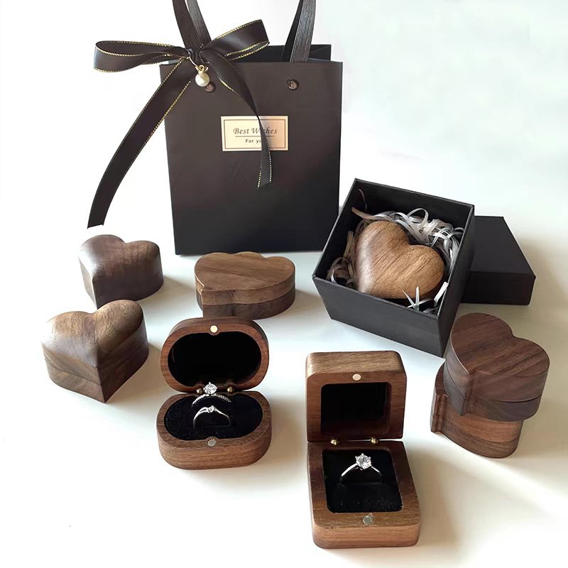 指輪箱結婚胡桃木ピアス復古プロポーズ指輪箱ペアリング結婚指輪収納ケース木森送人