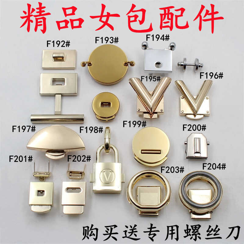 女性のカバンの金属の部品は暗いボタンを押してロックを修理します。