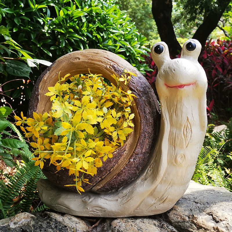 屋外のベランダのカタツムリの花のかごの植木鉢のかわいい漫画の復古的な庭園の地面の装飾の舞台のベランダのアイデアの鉢植え