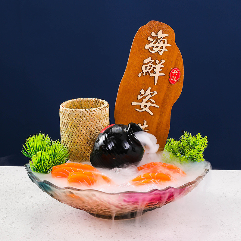 日本式サーモンの刺身皿の日本料理の刺身の盛り合わせの皿の海鮮の姿は魚の生の氷の皿の商用を作ります。