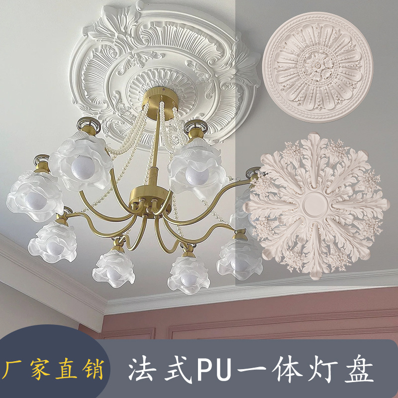 フレンチPUライトパネル、ラウンド天井形状装飾、ヨーロピアンスタイル模造石膏シャンデリアベース、寄木細工の組み合わせライトプールディスク