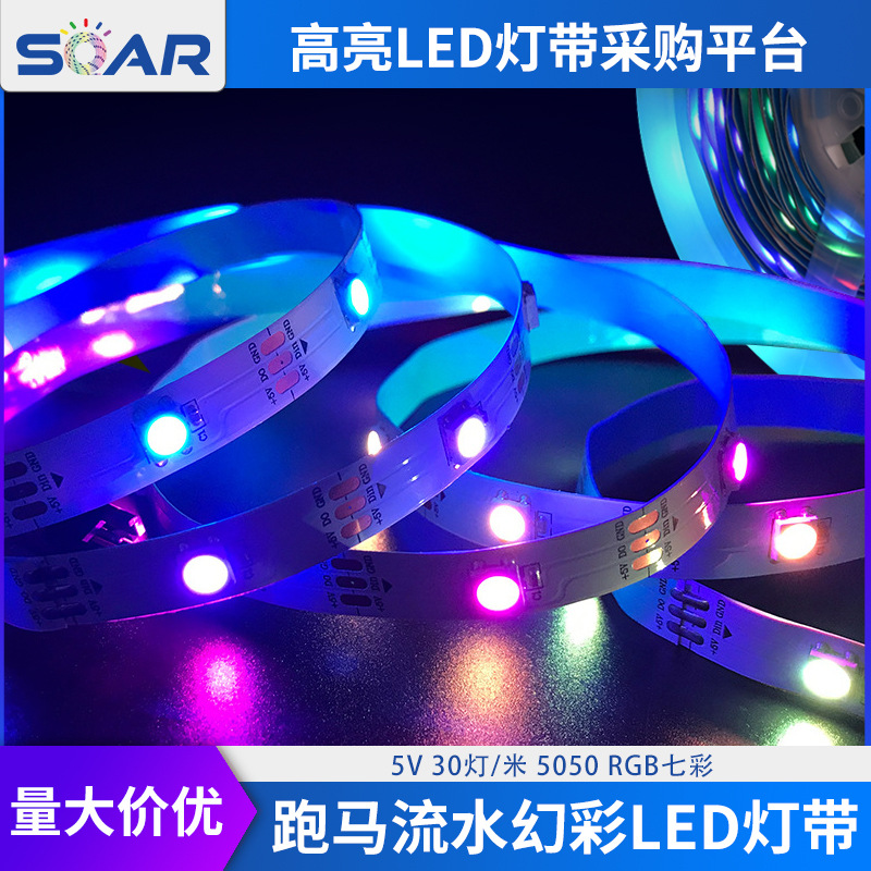 スポット rgb マジック流れる水ライトストリップ 5V30 ランプマーチング内蔵 ic5050 防水 WS2812 ソフトライトストリップ