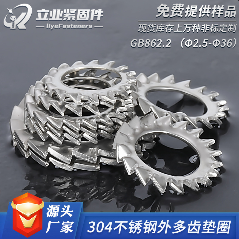 304ステンレス鋼外側多歯ロックワッシャー、外側鋸歯状滑り止め止め板、歯付き菊形ワッシャー
