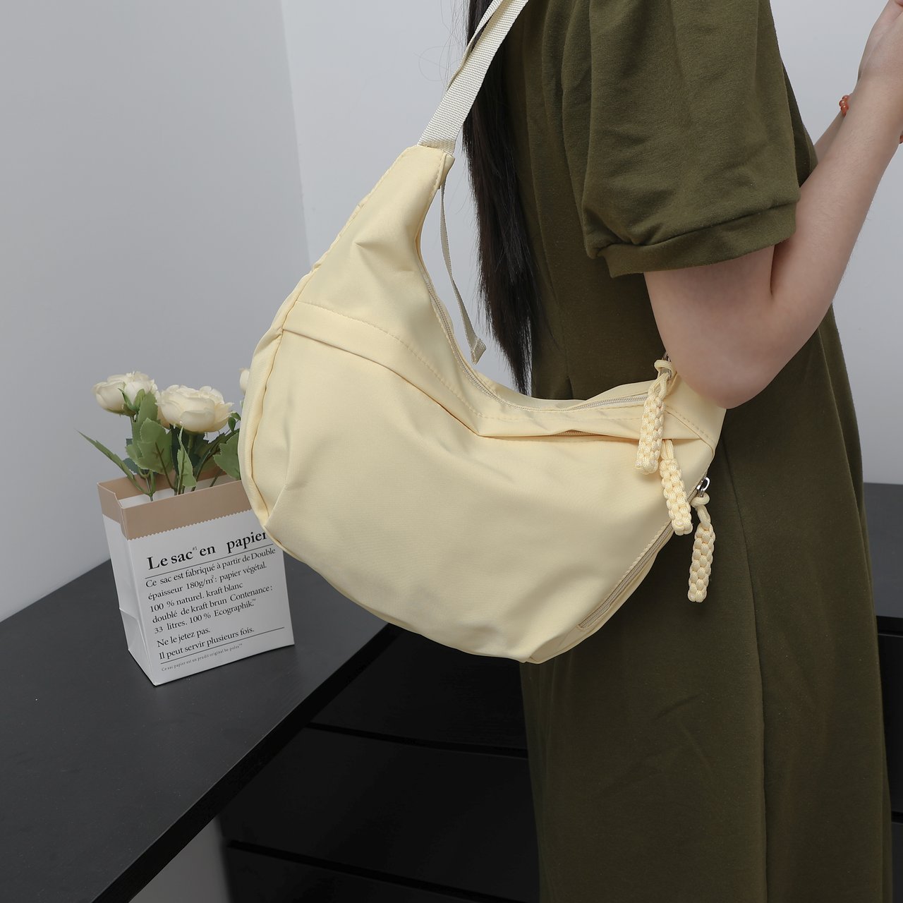 ショルダークロスボディバッグ 2025 ポータブル新ナイロン巾着バッグ韓国語版大容量トレンディでファッショナブルなカジュアルバケットバッグ