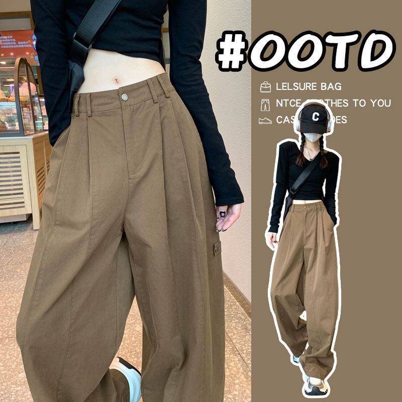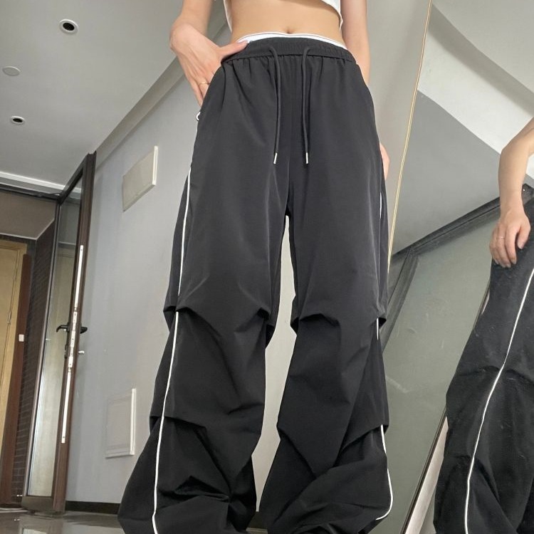 アメリカンハイストリートオーバーオールレディース夏新作プリーツパラシュートパンツスリムドレープワイドレッグフロアレングスパンツ大きいサイズ