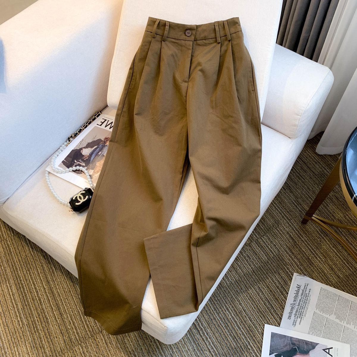 鎌カジュアルパンツレディース春夏新作ハイウエストルーズ痩身カジュアルスポーツワイドレッグパンツトレンディな大きいサイズ