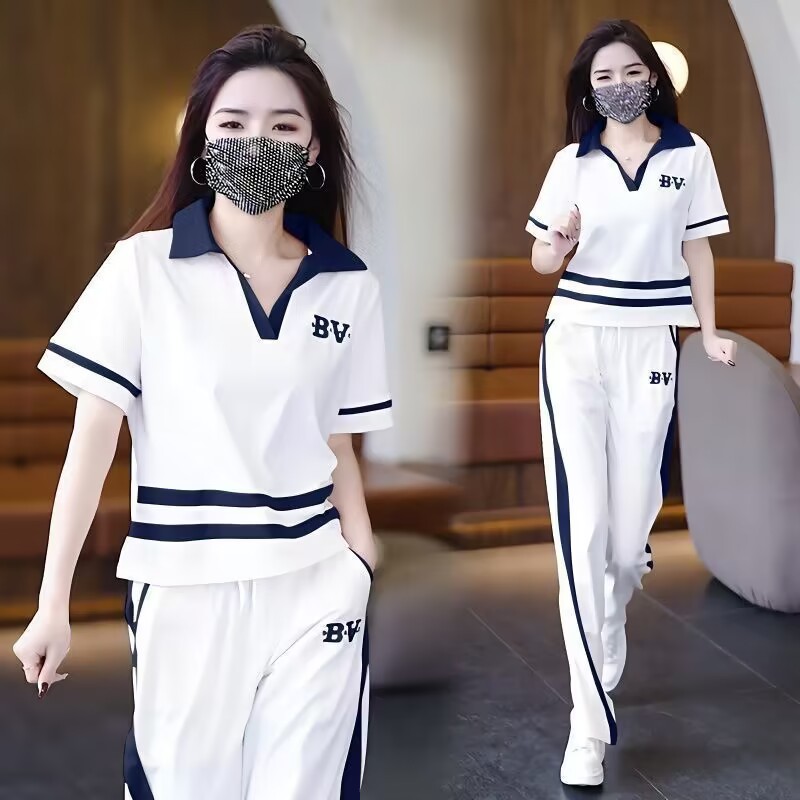 ファッション半袖スポーツウェアスーツ女性の夏の新しいスタイル西洋スタイルのスーツツーピーススーツ大きいサイズ