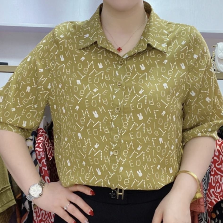 女性用の新しいスタイルの夏のシャツ、ゆったりしていてお腹をカバーする、多用途のプリントミッドスリーブ、年齢を減らす美しいカーディガン