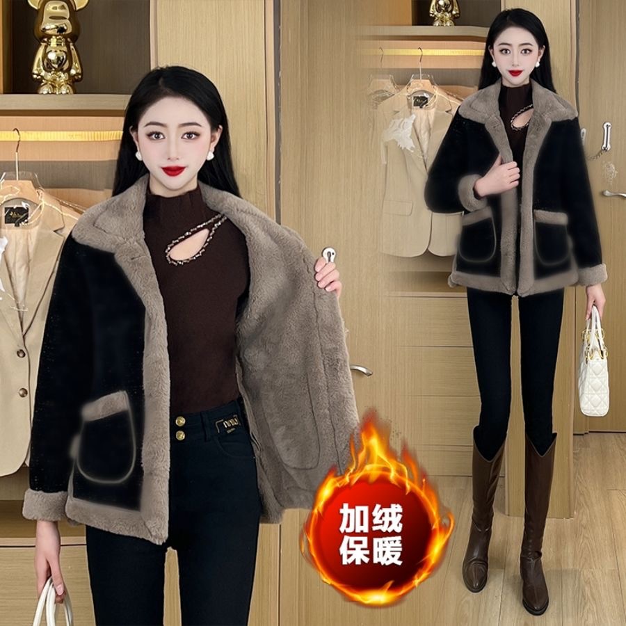 春の新作秋冬暖かい小さな香りのファッションショートベルベットジャケット女性のルーズカジュアルウールカーディガン