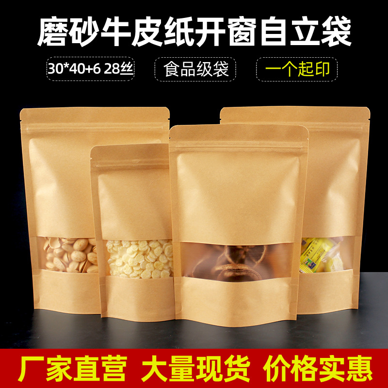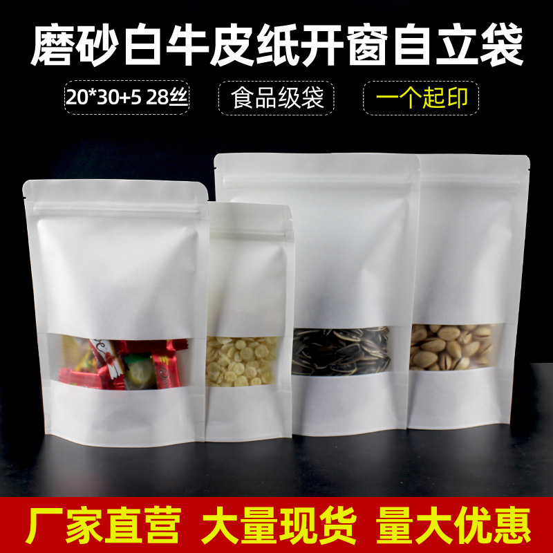 20*30 + 5自封袋白色クラフト紙袋研磨袋開窓自立袋乾燥食品包装袋現物