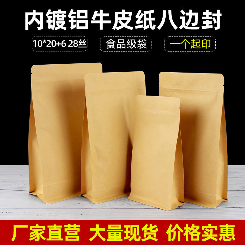 10*20 + 6八辺シール袋クラフト紙食品包装袋アルミメッキ自封袋シールドライフルーツ袋卸売り