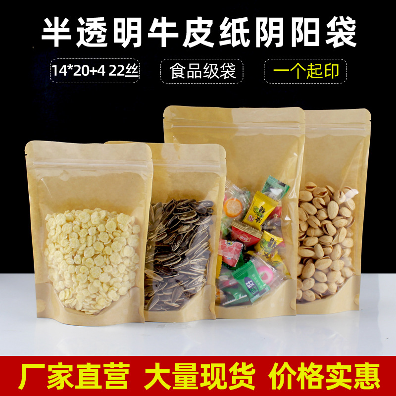 14*20 + 4クラフト紙透明自封袋陰陽自立袋密封食品袋果物乾燥包装袋現物